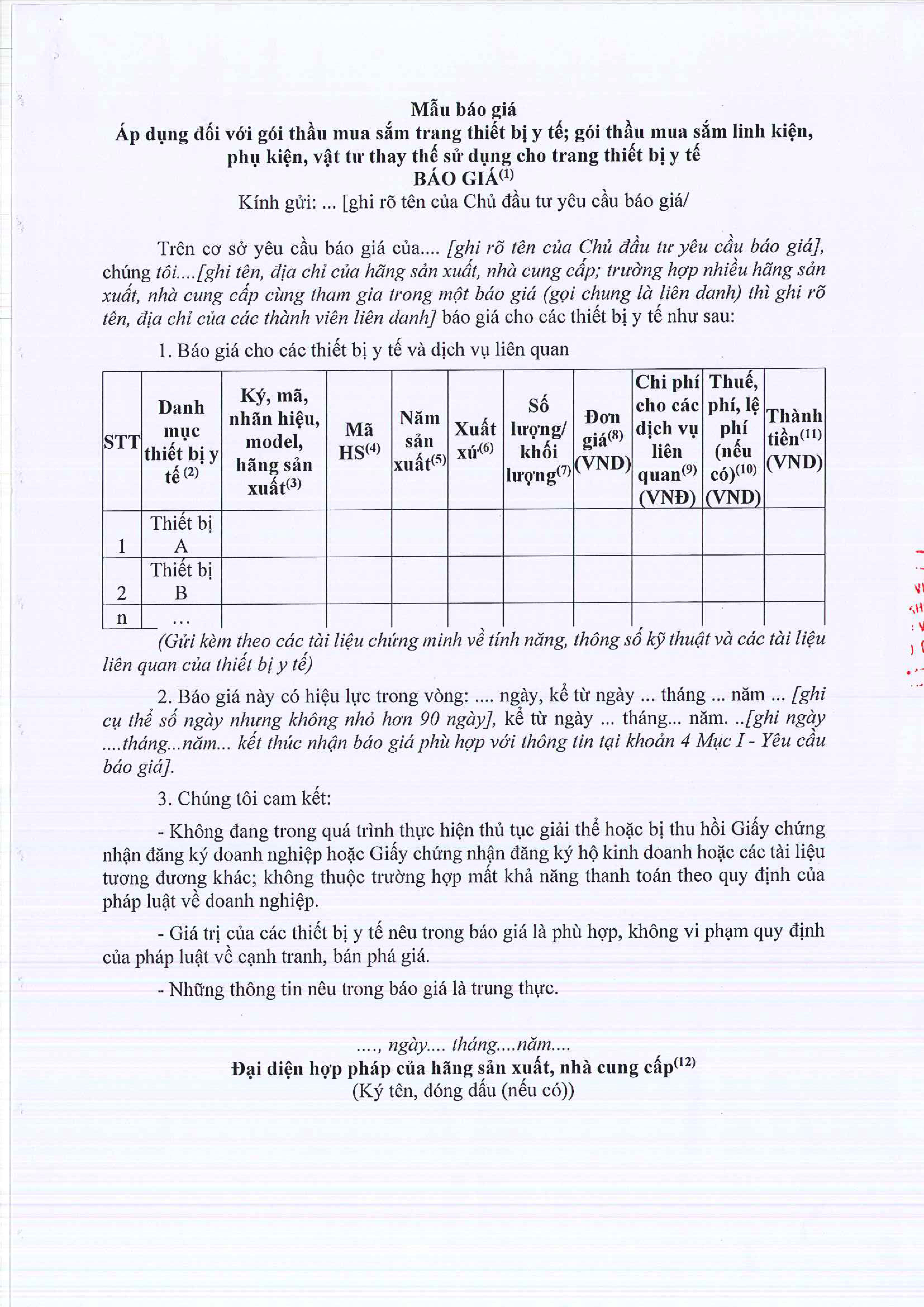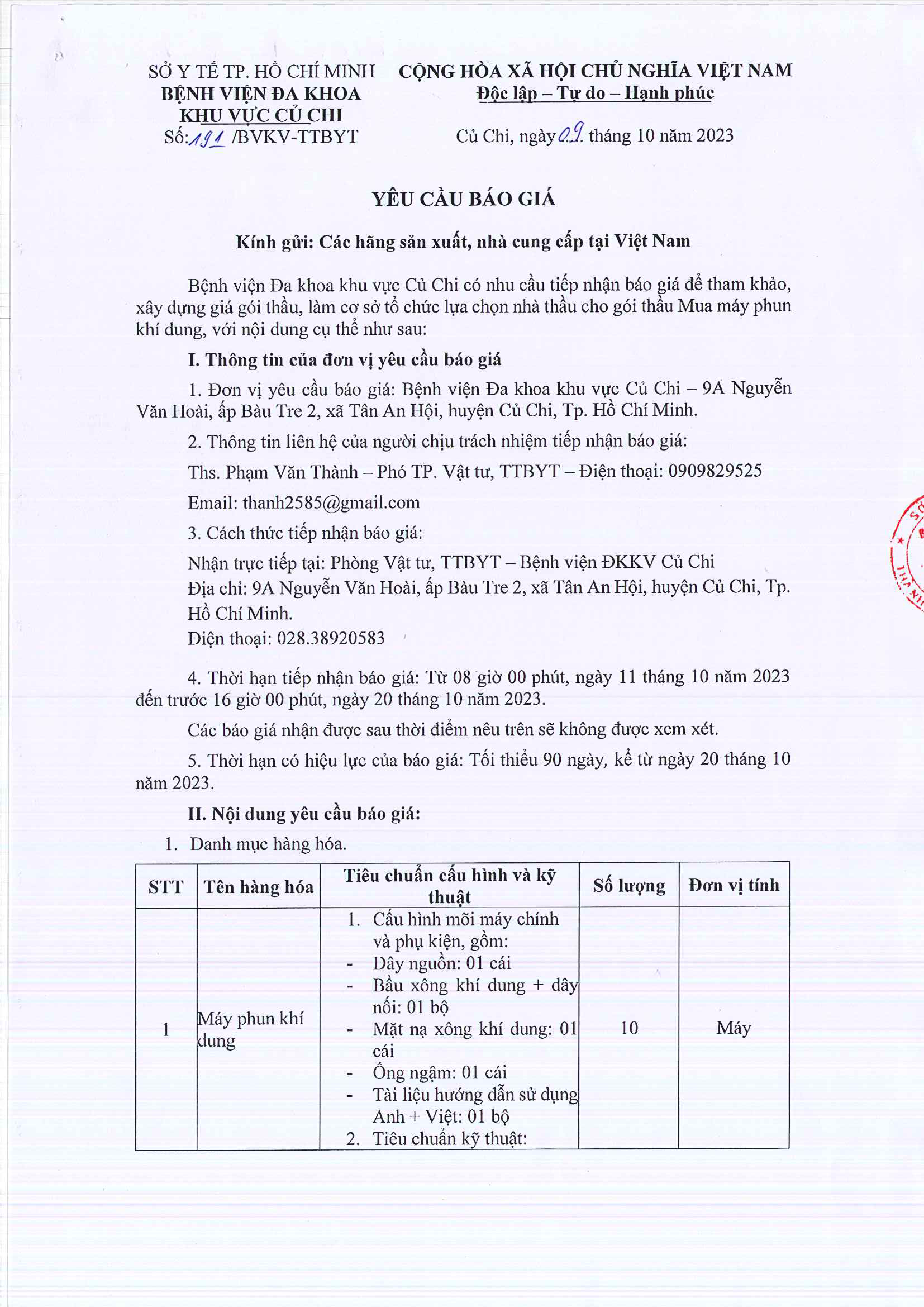 Thư mời báo giá (57/TM-BVKV-HCQT)