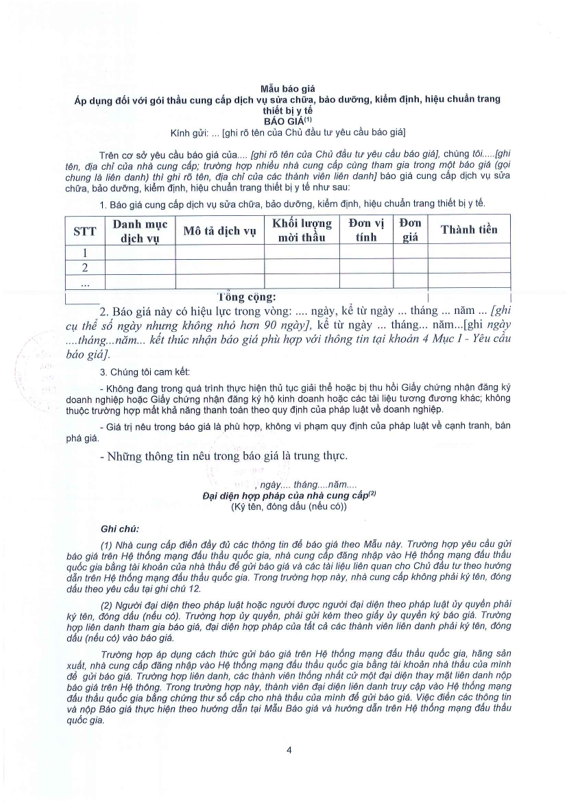• Thư mời báo giá (305/TM-BVKV) Chức năng bình luận bị tắt ở Thư mời báo giá (305/TM-BVKV)
