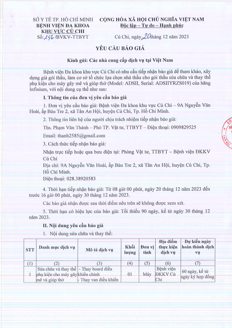 • Thư mời báo giá (136/TM-BVKV)