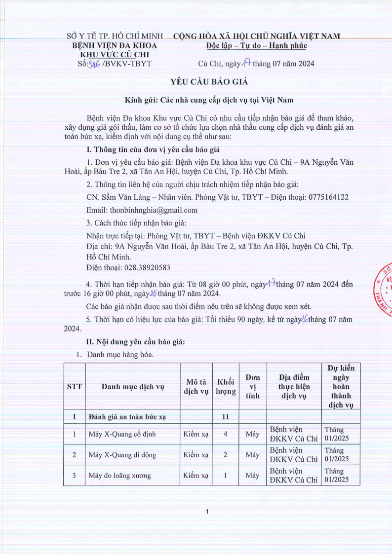 • Thư mời báo giá (136/TM-BVKV) Chức năng bình luận bị tắt ở Thư mời báo giá (136/TM-BVKV)