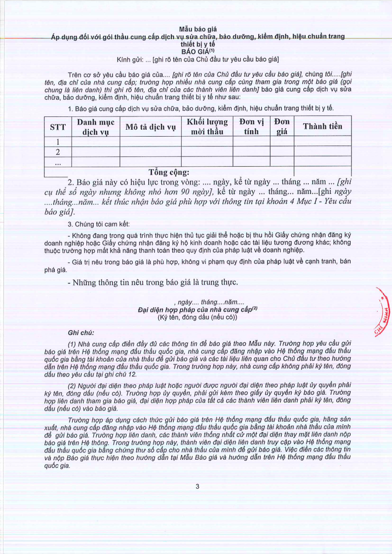 • Thư mời báo giá (135/TM-BVKV) Chức năng bình luận bị tắt ở Thư mời báo giá (135/TM-BVKV)