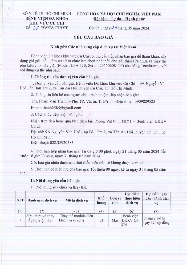 • Thư mời báo giá (136/TM-BVKV) Chức năng bình luận bị tắt ở Thư mời báo giá (136/TM-BVKV)