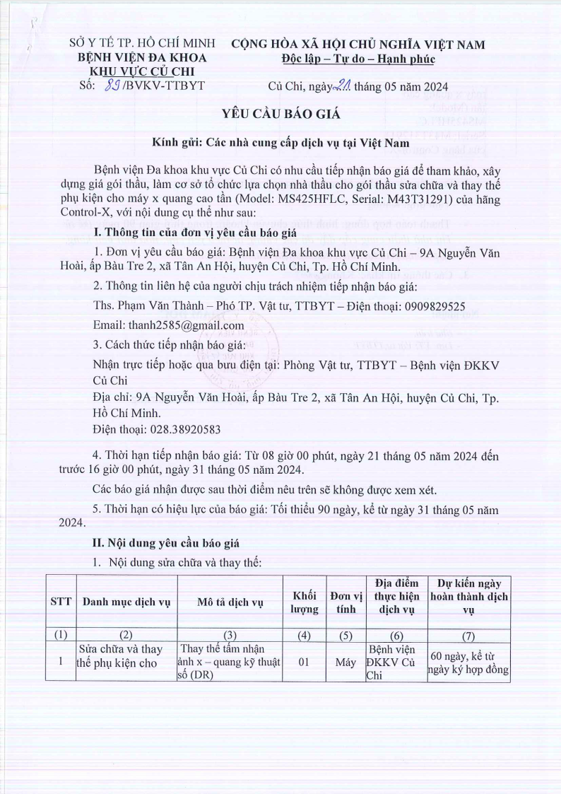 • Thư mời báo giá (136/TM-BVKV) Chức năng bình luận bị tắt ở Thư mời báo giá (136/TM-BVKV)